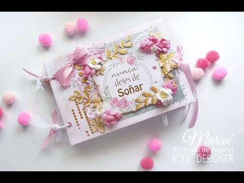 TUTORIAL de un mini álbum de estilo romántico, muy femenino realizado, con los materiales de Kora Projects por Mariví González de “El rincón de Ángela”: utilizados: